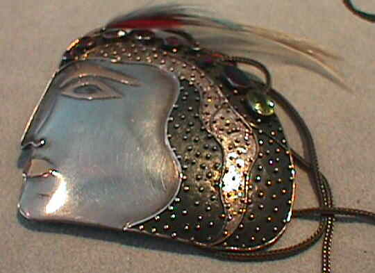 Indianerbrosche, Silber, mit Feder und Edelsteinen besetzt
